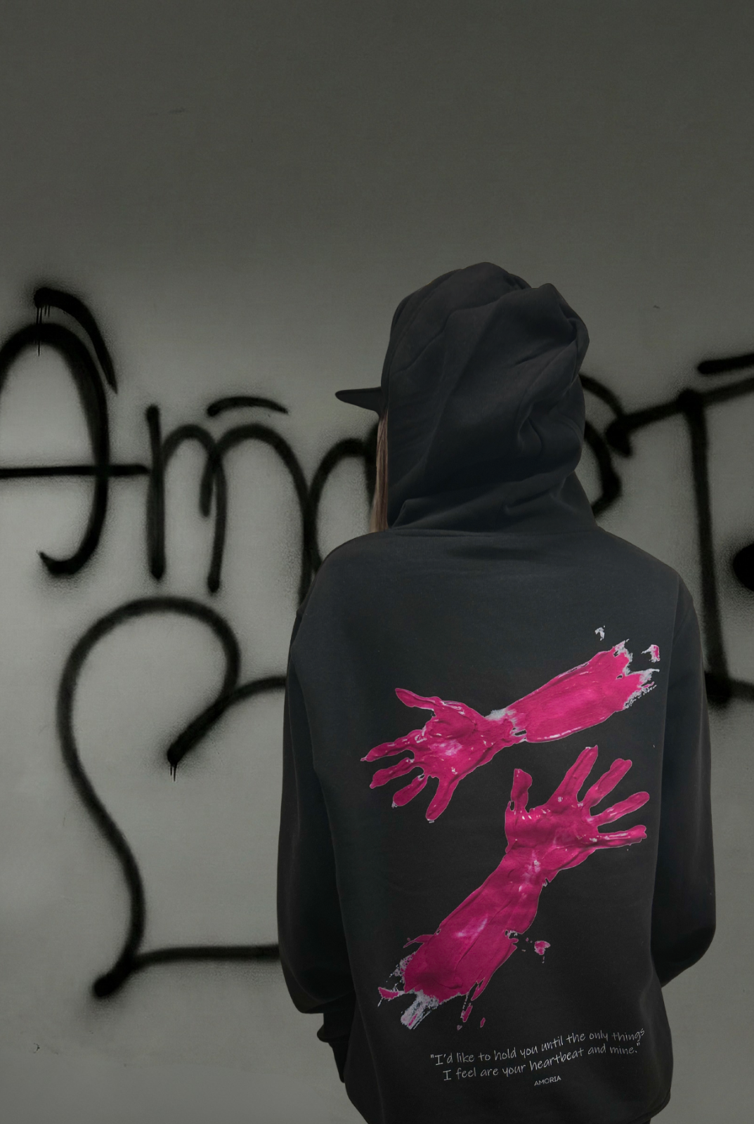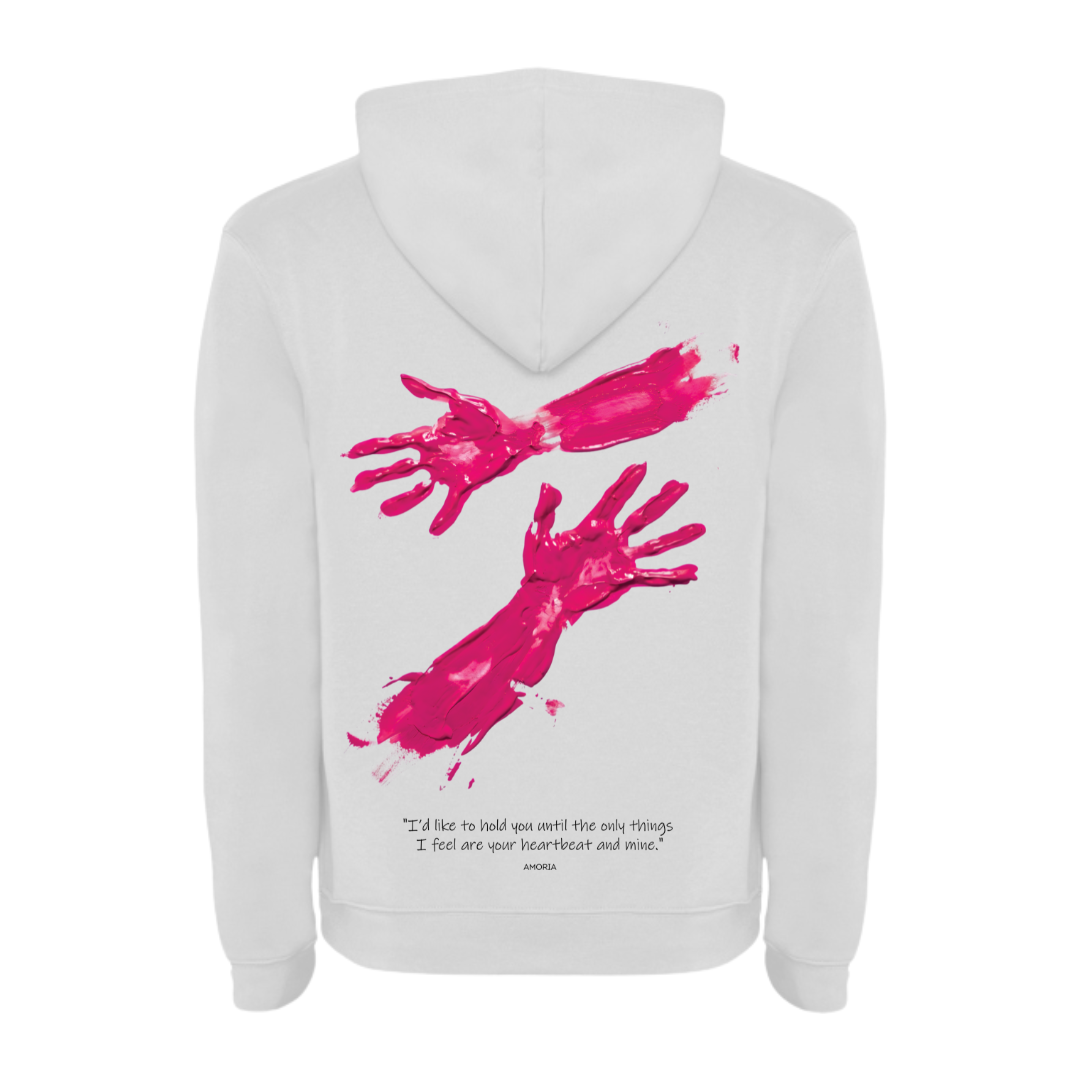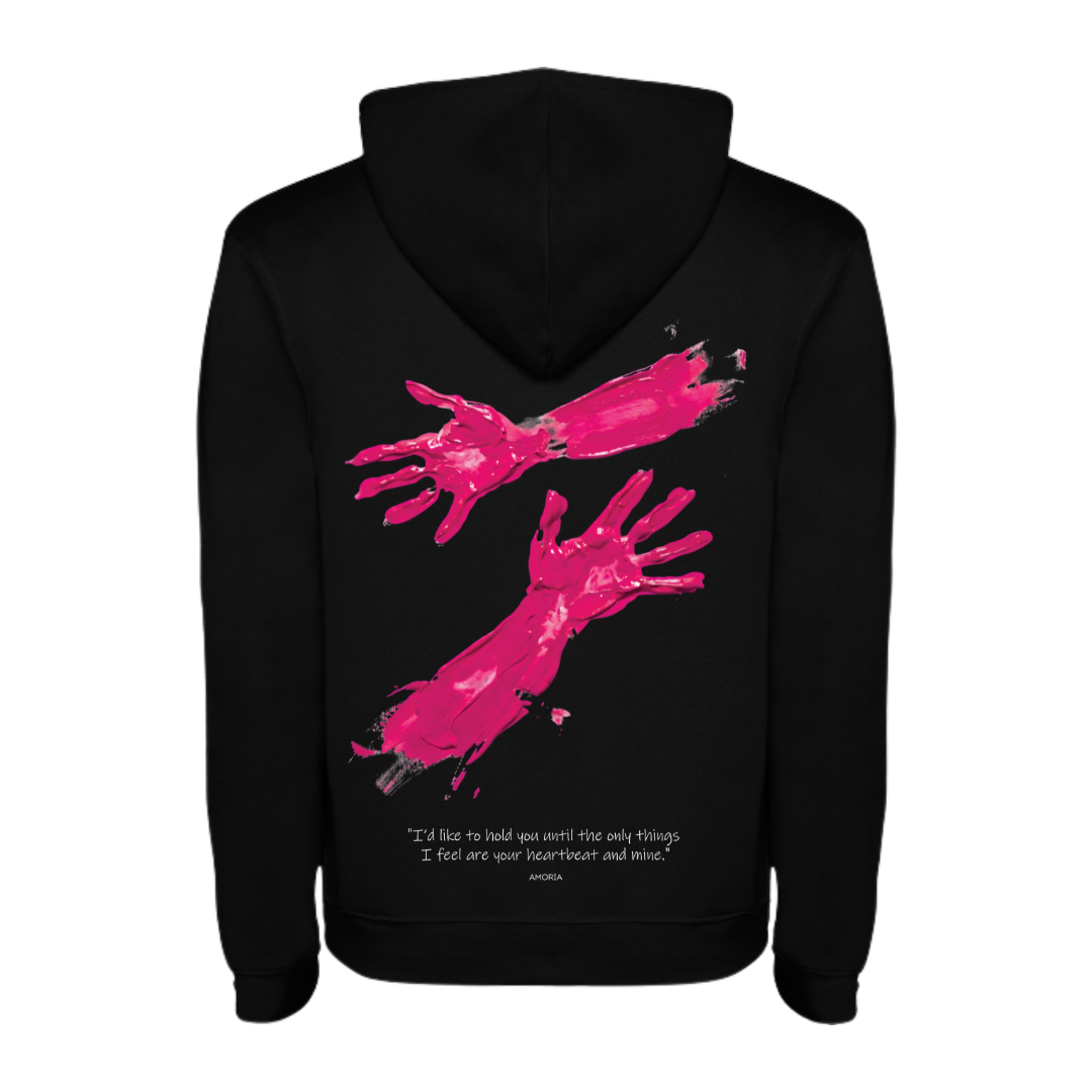 Този суичър е повече от облекло – той е усещане за близост. Дизайнът въплъщава копнежа за връзка между две души, изразен чрез експресивни художествени елементи.